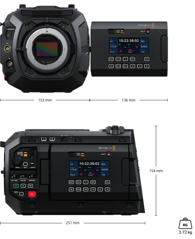 Blackmagic URSA Cine 12K LF revolutioniert das digitale Kino durch die Einführung eines neuen 36 x 24 mm großen RGBW-Sensors mit größeren Fotositen und einem Dynamikbereich von 16 Blendenstufen. Das Modell URSA Cine 12K LF Body ist ideal, wenn Sie bereits über Kinozubehör verfügen und dieses nutzen möchten, um Ihre eigene maßgeschneiderte Kameraanlage zu erstellen. Nicht im Lieferumfang enthalten sind Griff, Stativplatte, Netzteil, Batterieplatte und EF-Anschluss. Im Lieferumfang enthalten sind stattdessen ein austauschbarer EF-Anschluss, ein zweites 5-Zoll-HDR-Touchscreen-Display mit einer Reihe dedizierter Bedienelemente, integrierte ND-Filter sowie professionelle Lemo- und Fischer-Anschlüsse. Der Blackmagic URSA Cine 12K LF Body verfügt außerdem über ein CFexpress-Medienmodul, 10G-Hochgeschwindigkeits-Ethernet und WLAN zum schnellen Hochladen und Synchronisieren von Dateien in die Blackmagic Cloud.