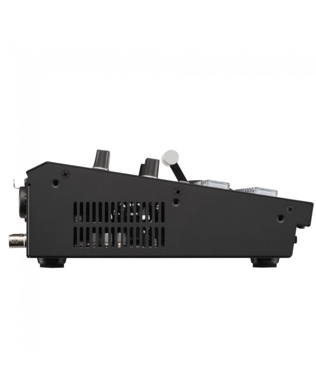 Professionelle Broadcast-Cross-Point-Buttons mit PGM/PST LED-Farbanzeigen. Robuster T-Bar, DSK Quick-Edit-Regler für Key-Level und Gain. Zwei fest zugeordnete PinP- und Split-Buttons mit Reglern für zentrisch angeordnete Split- und PinP-Bilder. Wechsel des Übergangstyps via Mix- oder zwei Preset-Wipe-Buttons mit fest zugeordnetem Regler für das Anpassen der Übergangs- und Überblendzeit. 3''-LCD-Bildschirm auf der Frontseite mit Schnellzugriff-Navigation für das Anpassen der Switcher-Parameter.