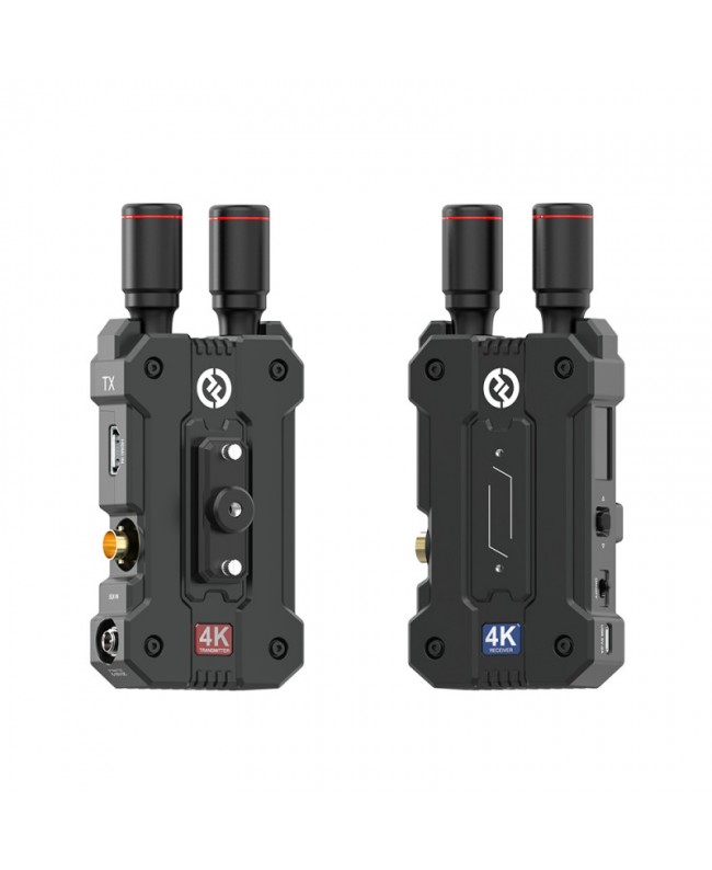 System consisting of transmitter and receiver capable of sending a 4K video signal at 30 fps over a distance of 150 m with a latency of only 60 ms. Mars 4K is designed to offer the best synergy between high performance, compatibility and reliability and extends the already well-known family of Hollyland wireless transmitters and receivers with a product with unique features. The unit obviously also supports FHD and HD formats with variable frame rates: 24p, 30p and 60p. The performance of the new dual-core codec chip, capable of achieving a data transfer rate of 12 Mbps, also contributes to the range of 150 m (LOS) and the ultra-low latency of only 0.06 s. Channel assignments options enable interference-free transmission; intelligent channel scanning helps you to determine which ones are busy and select which ones are free. Mars 4K also allows HDMI and SDI inputs and outputs for extended connectivity and compatibility. SDI offers greater frame rate flexibility for both broadcast and production standards, another of the standout features of the system. The transmitter is compatible with up to two receivers or four mobile devices with the proper App installed. Four mobile devices allow as many people (such as the director, the producer, the lighting manager and the sound engineer) to monitor the footage at the same time. Mars 4K features the proverbial corrosion and wear resistance that Hollyland customers already know, for exceptional durability. Additional features are the "bullet-style" antennas, the color LCD display and its multiple DC power options: 6V to 16V, with NP-F batteries and USB type C charger.