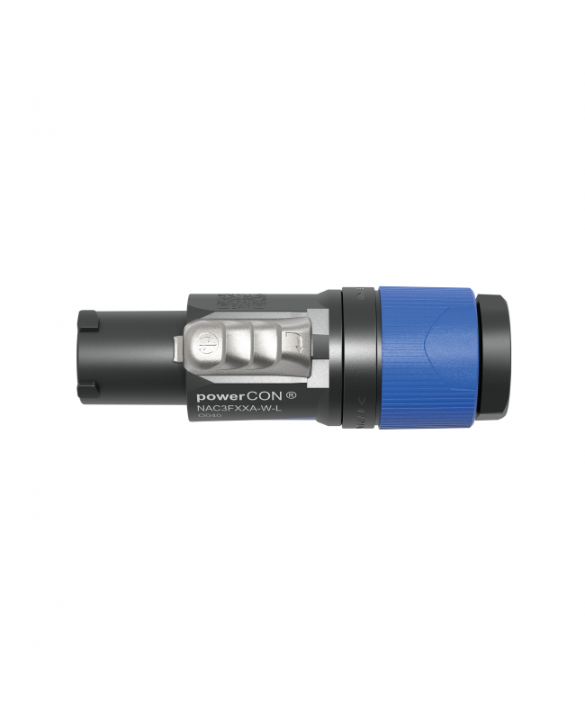 The Neutrik powerCON Connector is a keyed, locking AC mains cable connector for single-phase power inputs. It has silver-plated contacts and is suitable for circuit-breaking when mated with Neutrik powerCON XX Series receptacles. It has screw terminals for assembling with signal wires between 1.5 and 2.5 mm² and an outer diameter between 10 and 16 mm.