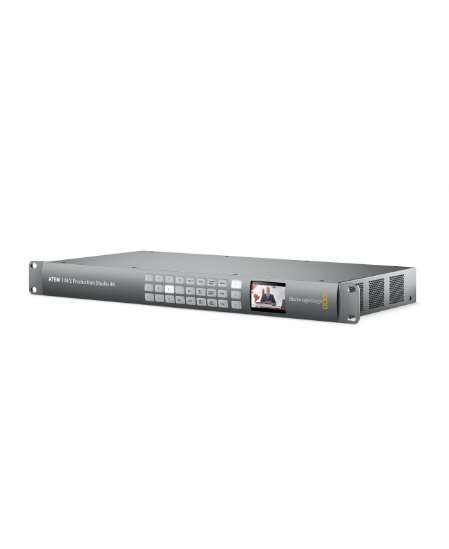 The advanced ATEM 1 M/E Production Studio 4K model switches between SD, HD or Ultra HD video standards so you can connect a wide range of video sources such as cameras, disk recorders and computers. Featuring 10 inputs, chroma keys, transitions, media pool, 4 upstream keyers, downstream keyers, audio mixer, multi view, full motion DVE, stinger transitions, large media pool with full motion clips and 3 auxiliary outputs!