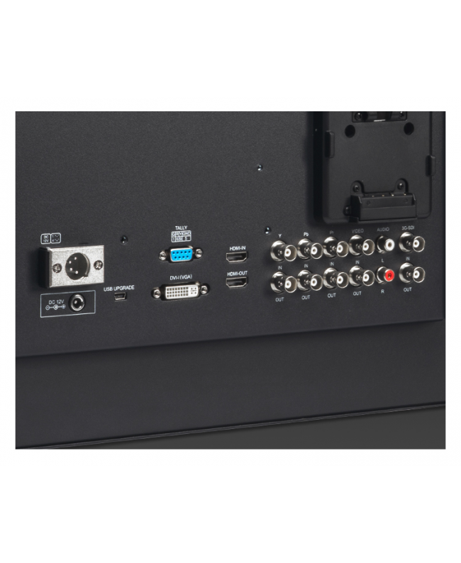Il monitor è dotato di interfacce 3G-SDI, HDMI, YPbPr, Video, DVI, Audio L/R, per soddisfare tutte le esigenze di ingresso e visualizzazione di segnali video HD, SD e analogici.
